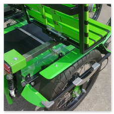 Das sehr stabile Fahrwerk besteht aus Simson Moped Teilen. Diese Mopeds wurden ca. 40 Jahre lang nahezu unverändert in der DDR gebaut. Diese Teile werden heute von mehreren Firmen nachgebaut und in großen Stückzahlen und Farb - und Materialvarianten angeboten.